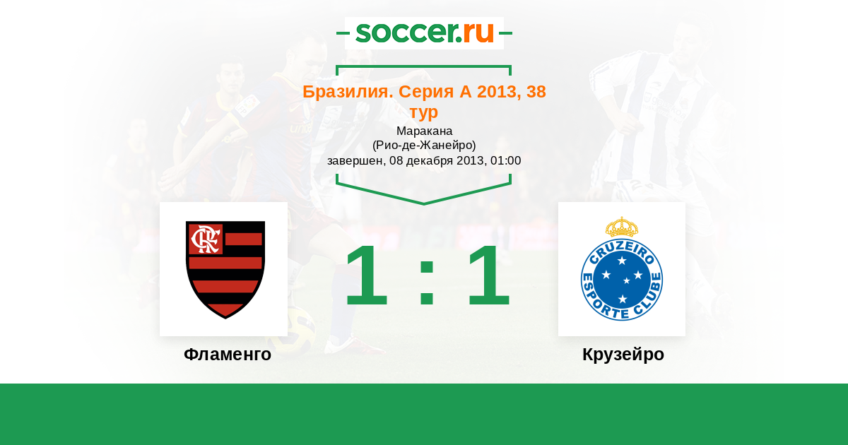 Бразилия. Серия А 12.10.2014 Фламенго Логотип футбольный клуб Фламенго (Рио-де-Жанейро) 3:0 Логотип футбольный клуб Крузейро (Белу-Оризонти) Крузейро