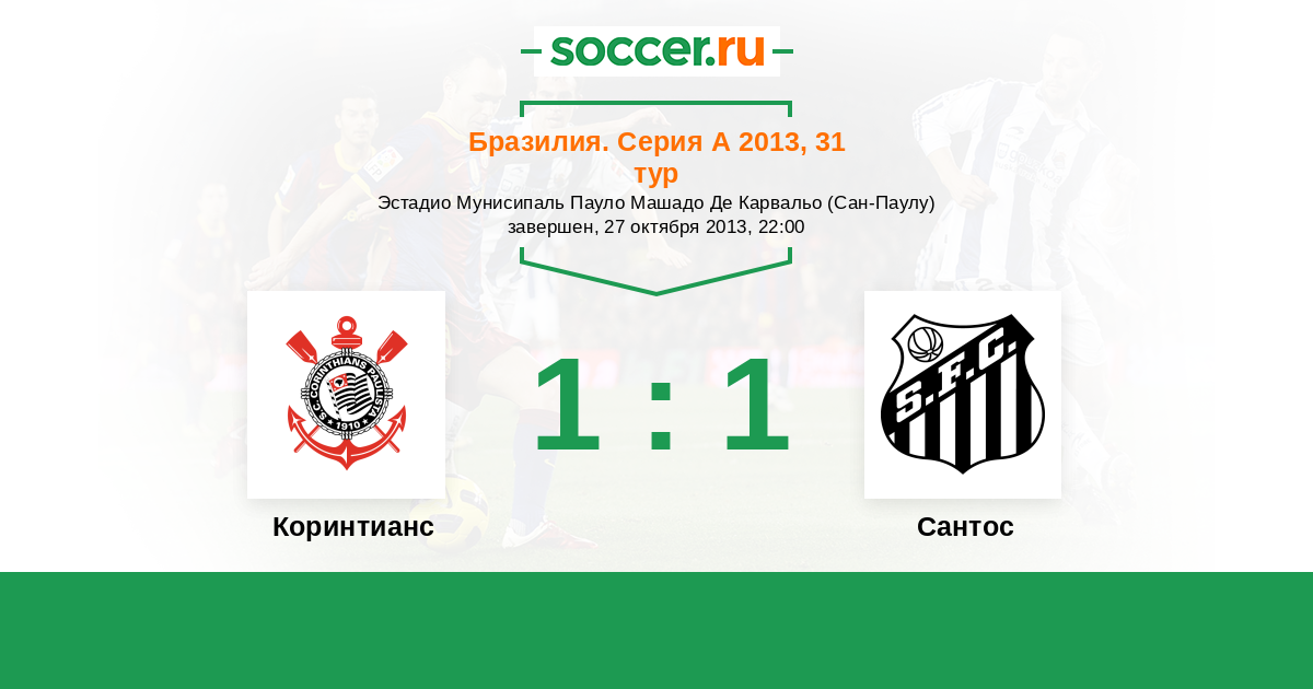 Бразилия. Серия А 08.08.2013 Сантос Логотип футбольный клуб Сантос (Сан-Паулу) 1:1 Логотип футбольный клуб Коринтианс (Сан-Паулу) Коринтианс