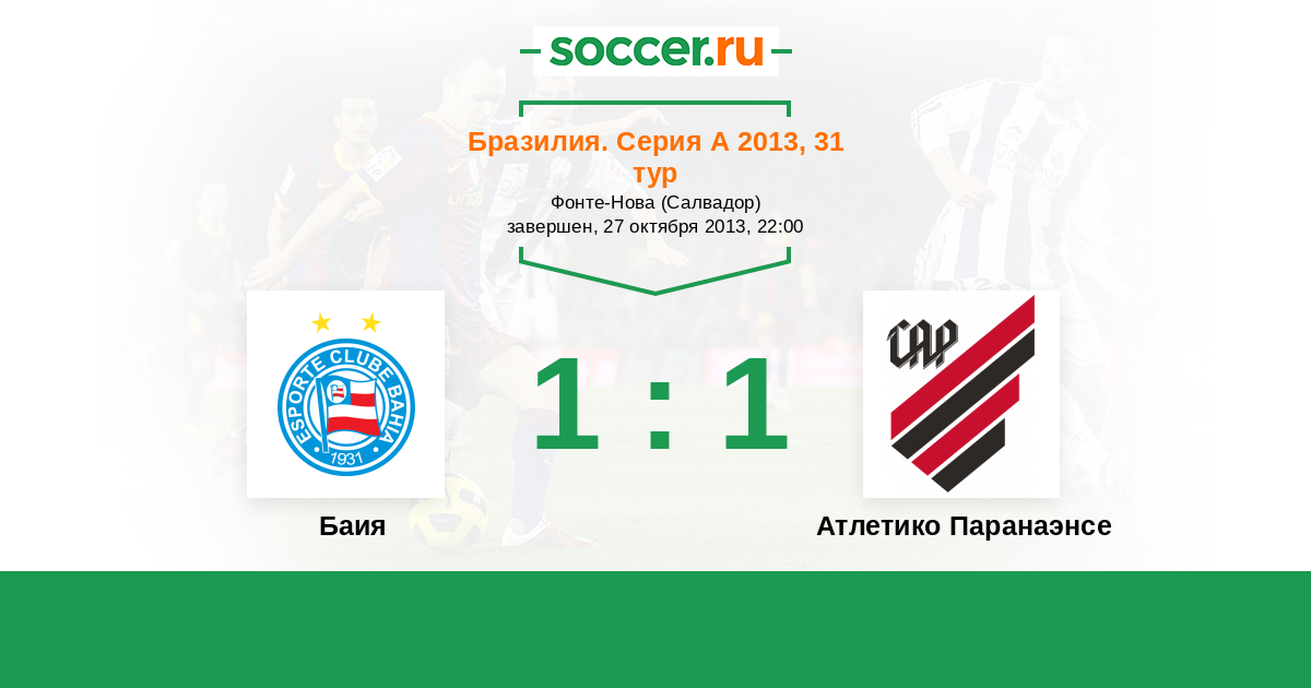 Бразилия. Серия А 08.08.2013 Атлетико Паранаэнсе Логотип футбольный клуб Атлетико Паранаэнсе (Куритиба) 1:0 Логотип футбольный клуб Баия (Салвадор) Баия