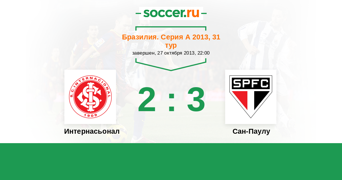 Бразилия. Серия А 25.07.2013 Сан-Паулу Логотип футбольный клуб Сан-Паулу 0:1 Логотип футбольный клуб Интернасьонал (Порту-Алегри) Интернасьонал