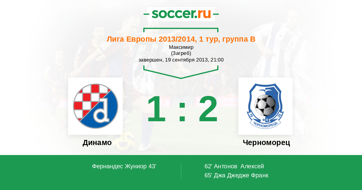 Протокол матча Динамо против Черноморец