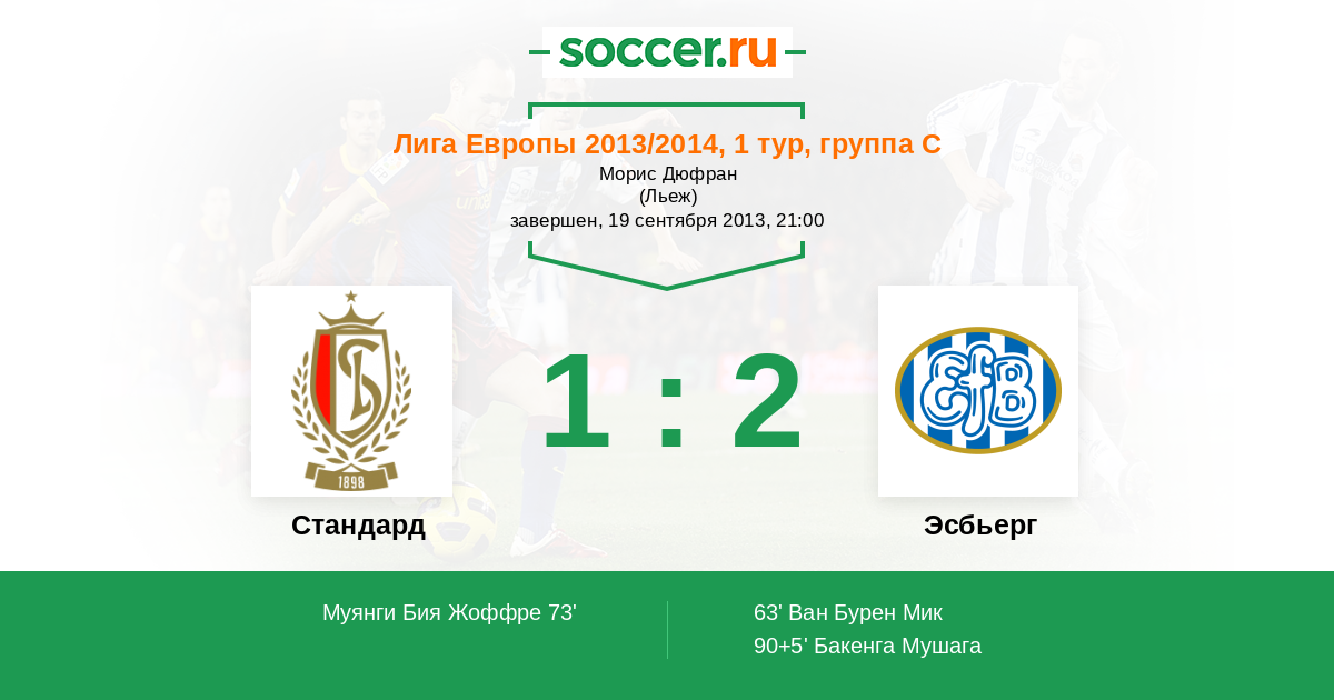 Протокол матча Стандард против Эсбьерг