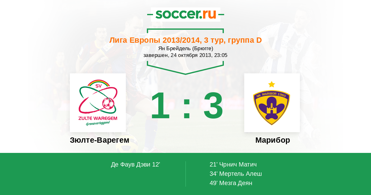 Протокол матча Зюлте-Варегем против Марибор
