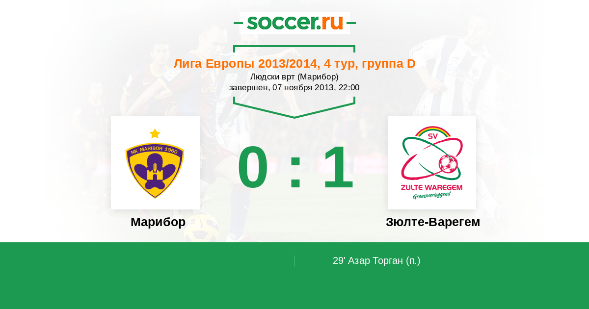 Протокол матча Марибор против Зюлте-Варегем