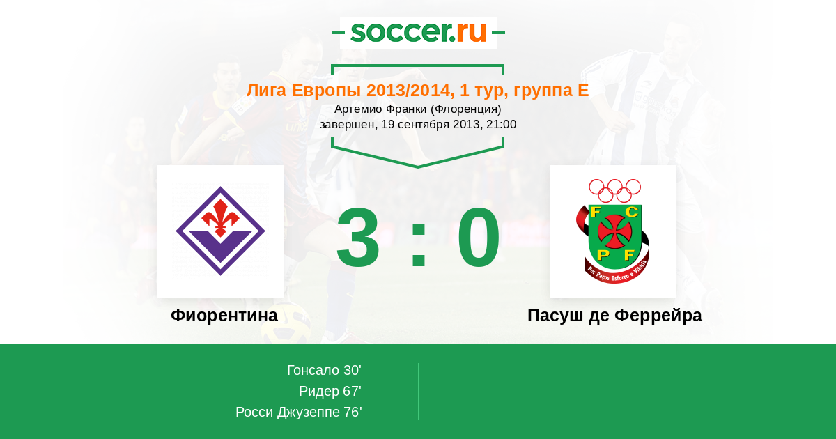 Протокол матча Фиорентина против Пасуш де Феррейра