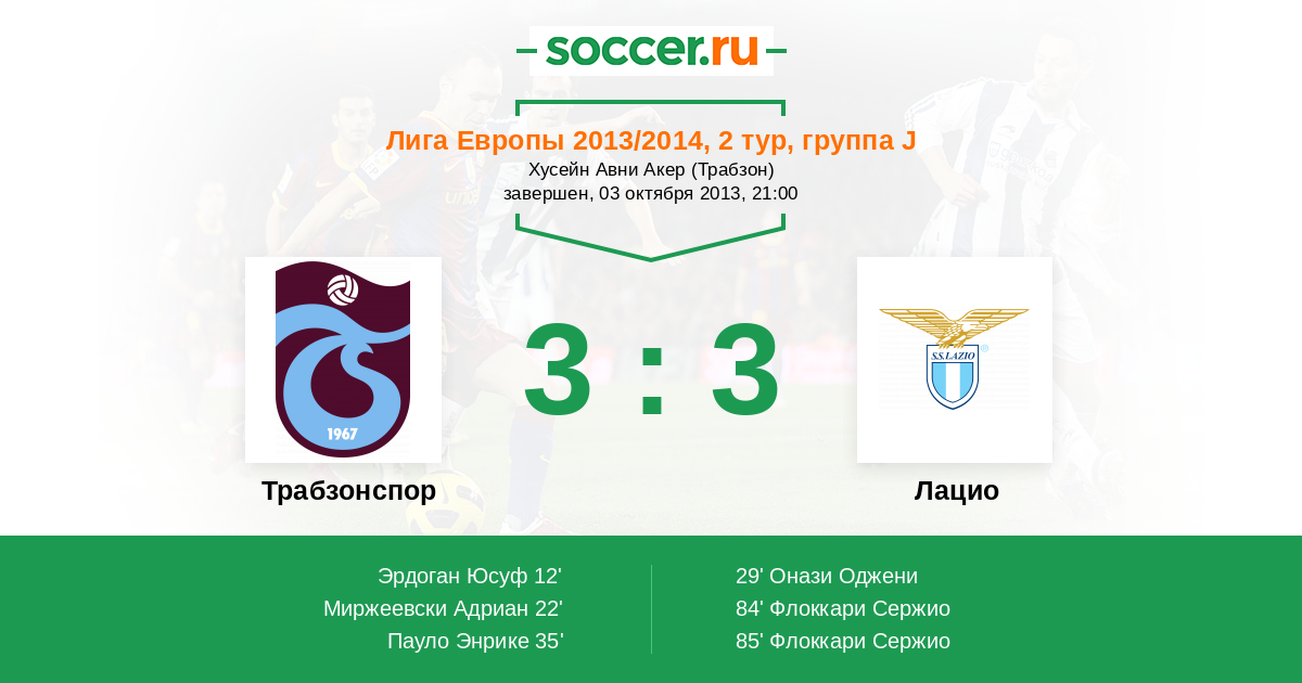 Протокол матча Трабзонспор против Лацио