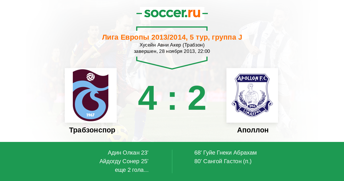 Протокол матча Трабзонспор против Аполлон