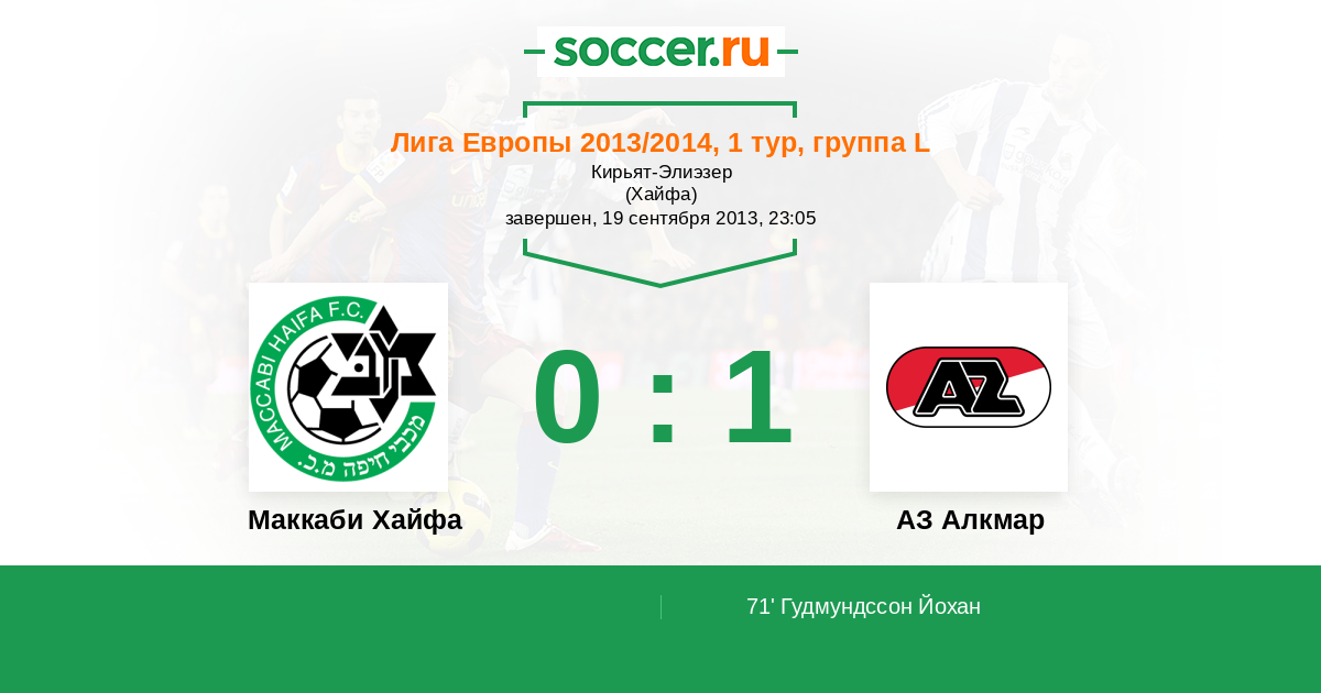 Протокол матча Маккаби Хайфа против АЗ Алкмар