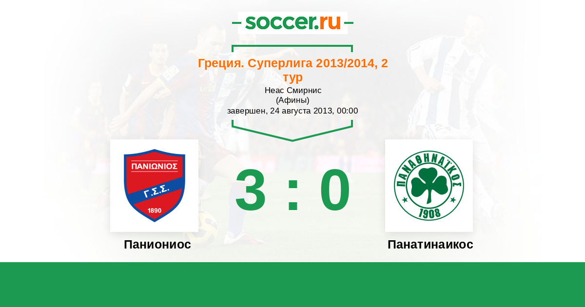 Греция. Суперлига 31.08.2014 Панатинаикос Логотип футбольный клуб Панатинаикос (Афины) 2:1 Логотип футбольный клуб Паниониос (Афины) Паниониос