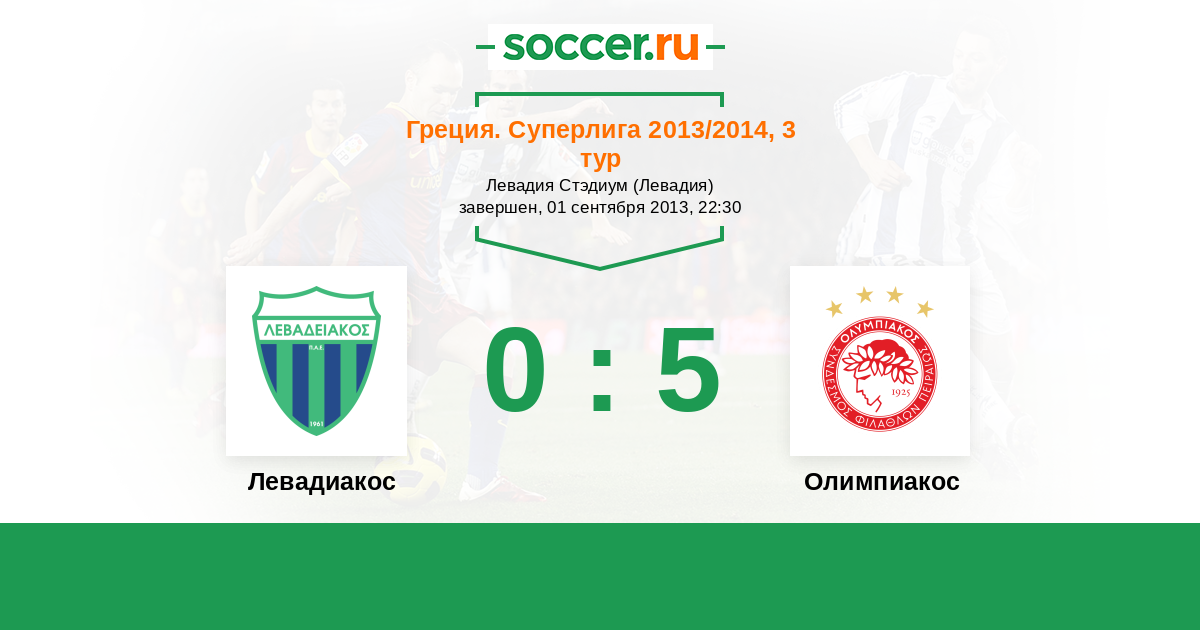 Греция. Суперлига 02.09.2012 Олимпиакос Логотип футбольный клуб Олимпиакос (Пирей) 4:0 Логотип футбольный клуб Левадиакос (Левадия) Левадиакос