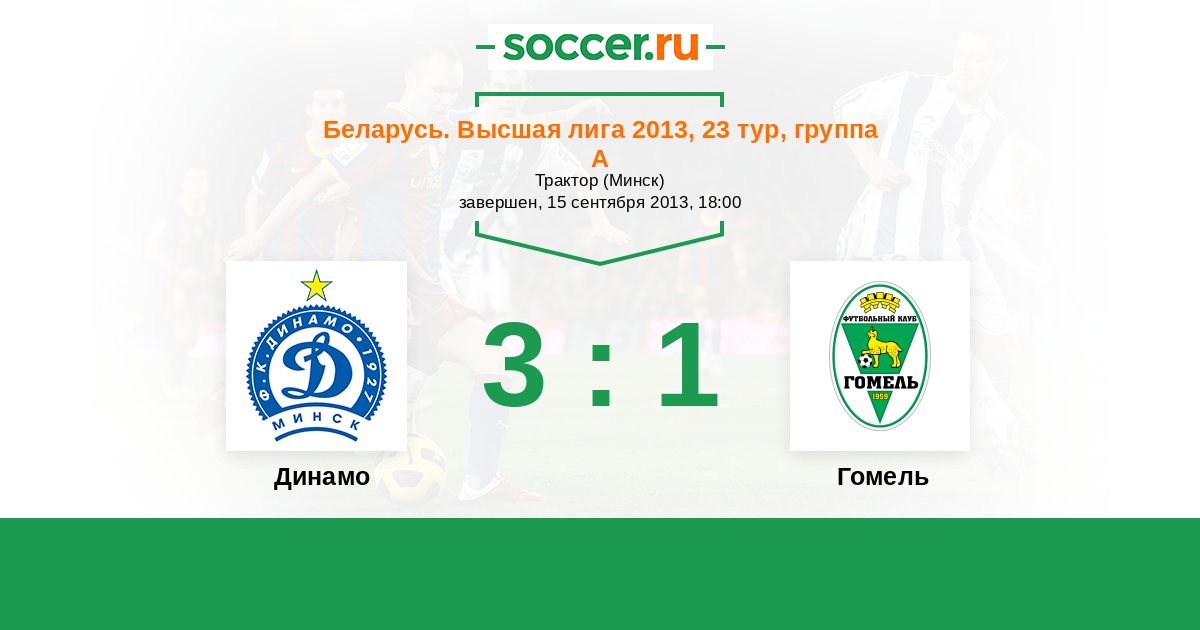 Беларусь. Высшая лига 14.07.2013 Гомель Логотип футбольный клуб Гомель 1:2 Логотип футбольный клуб Динамо (Минск) Динамо