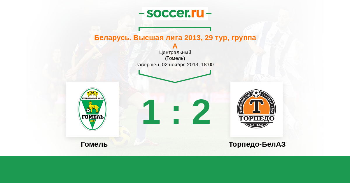 Беларусь. Высшая лига 21.09.2013 Торпедо-БелАЗ Логотип футбольный клуб Торпедо-БелАЗ (Жодино) 2:1 Логотип футбольный клуб Гомель Гомель