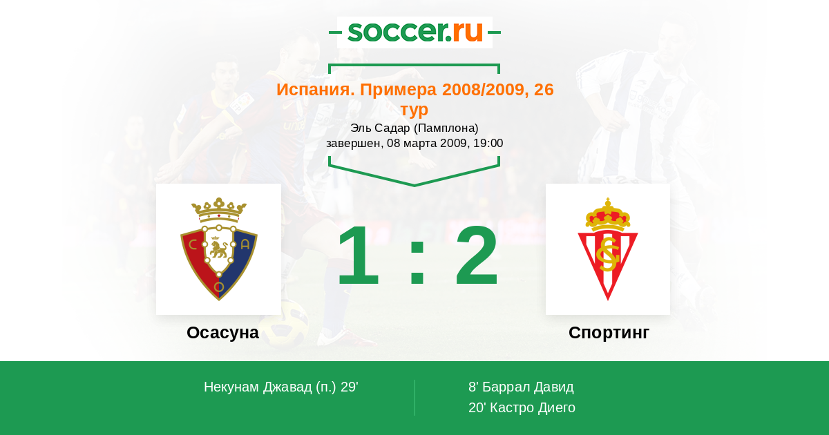 Протокол матча Осасуна против Спортинг