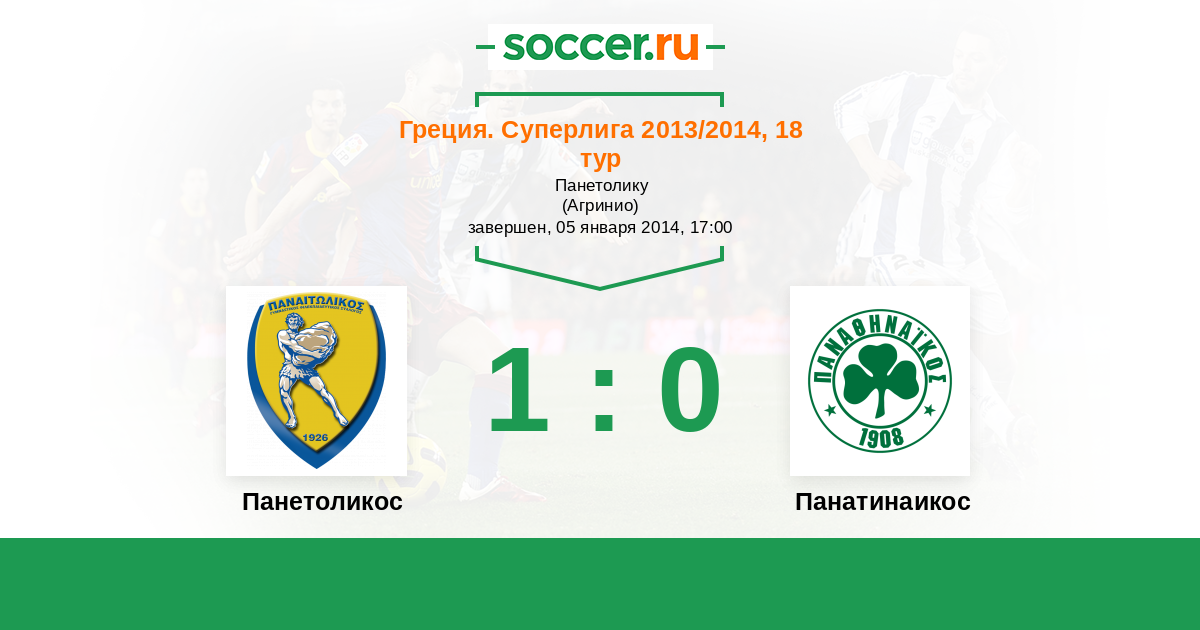 Греция. Суперлига 18.08.2013 Панатинаикос Логотип футбольный клуб Панатинаикос (Афины) 2:0 Логотип футбольный клуб Панетоликос (Агринио) Панетоликос