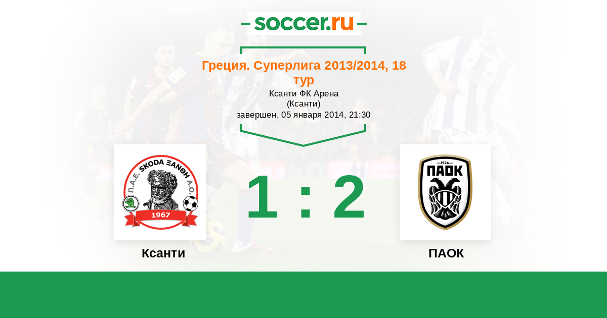 Греция. Суперлига 08.01.2012 Ксанти Логотип футбольный клуб Ксанти 0:0 Логотип футбольный клуб ПАОК (Салоники) ПАОК