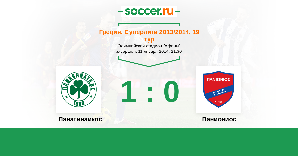 Греция. Суперлига 17.01.2015 Паниониос Логотип футбольный клуб Паниониос (Афины) 1:1 Логотип футбольный клуб Панатинаикос (Афины) Панатинаикос