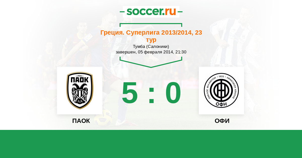 Греция. Суперлига 09.02.2013 ПАОК Логотип футбольный клуб ПАОК (Салоники) 3:1 Логотип футбольный клуб ОФИ (Ираклион) ОФИ