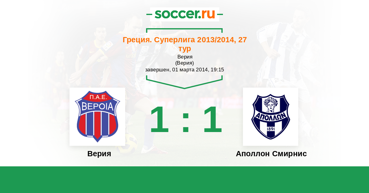 История матча Верия против Аполлон Смирнис