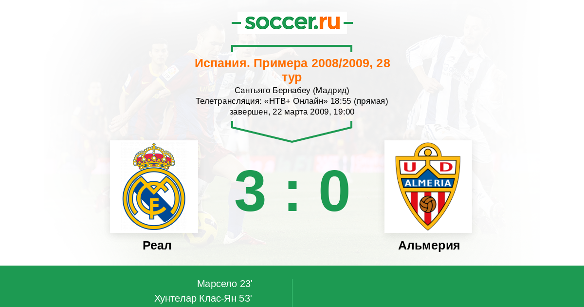 Протокол матча Реал против Альмерия