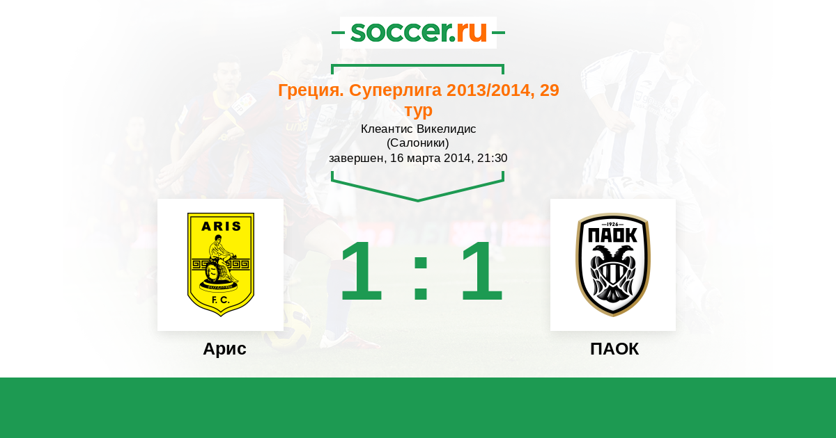История матча Арис против ПАОК