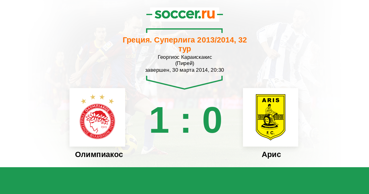 Греция. Суперлига 15.12.2013 Арис Логотип футбольный клуб Арис (Салоники) 0:2 Логотип футбольный клуб Олимпиакос (Пирей) Олимпиакос