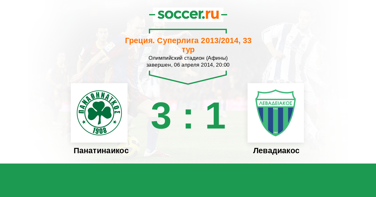 Греция. Суперлига 18.12.2013 Левадиакос Логотип футбольный клуб Левадиакос (Левадия) 0:4 Логотип футбольный клуб Панатинаикос (Афины) Панатинаикос