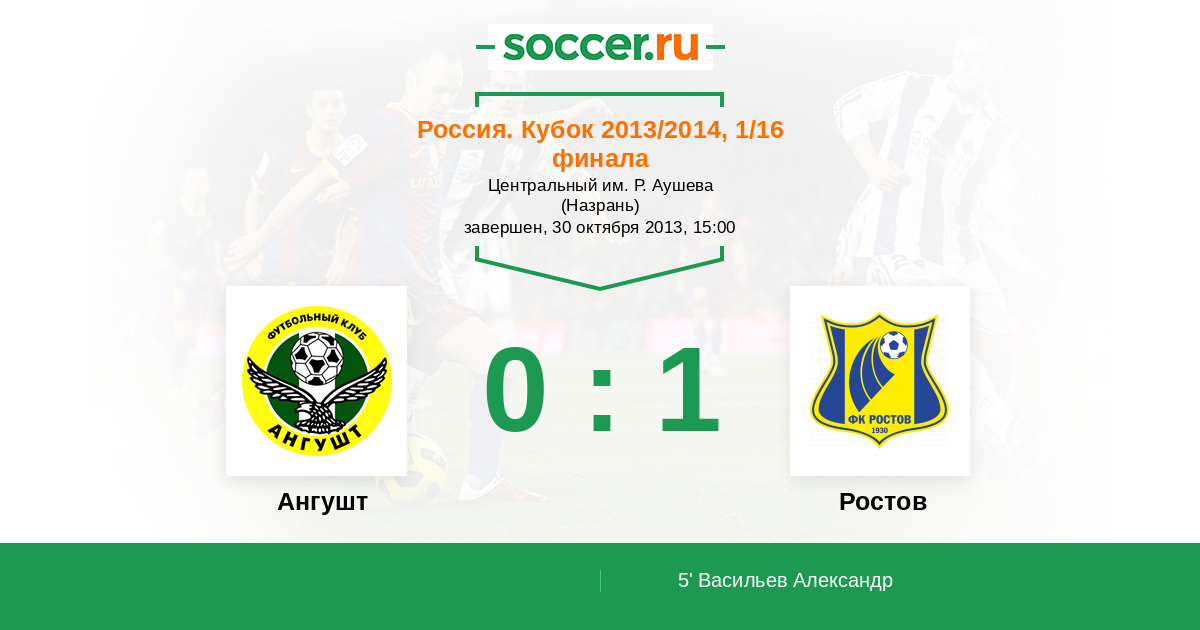 Протокол матча Ангушт против Ростов