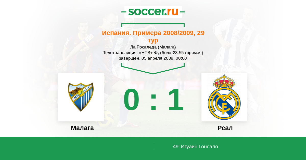 Протокол матча Малага против Реал