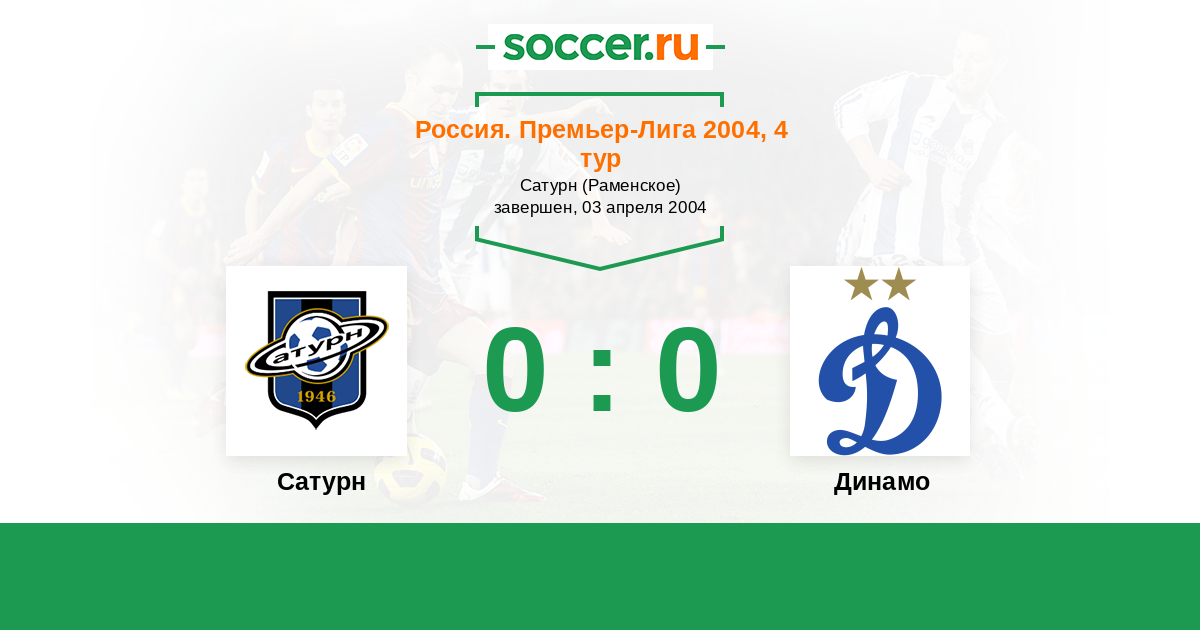 Россия. Премьер-Лига 24.10.2004 Динамо Логотип футбольный клуб Динамо (Москва) 0:2 Логотип футбольный клуб Сатурн (Раменское) Сатурн