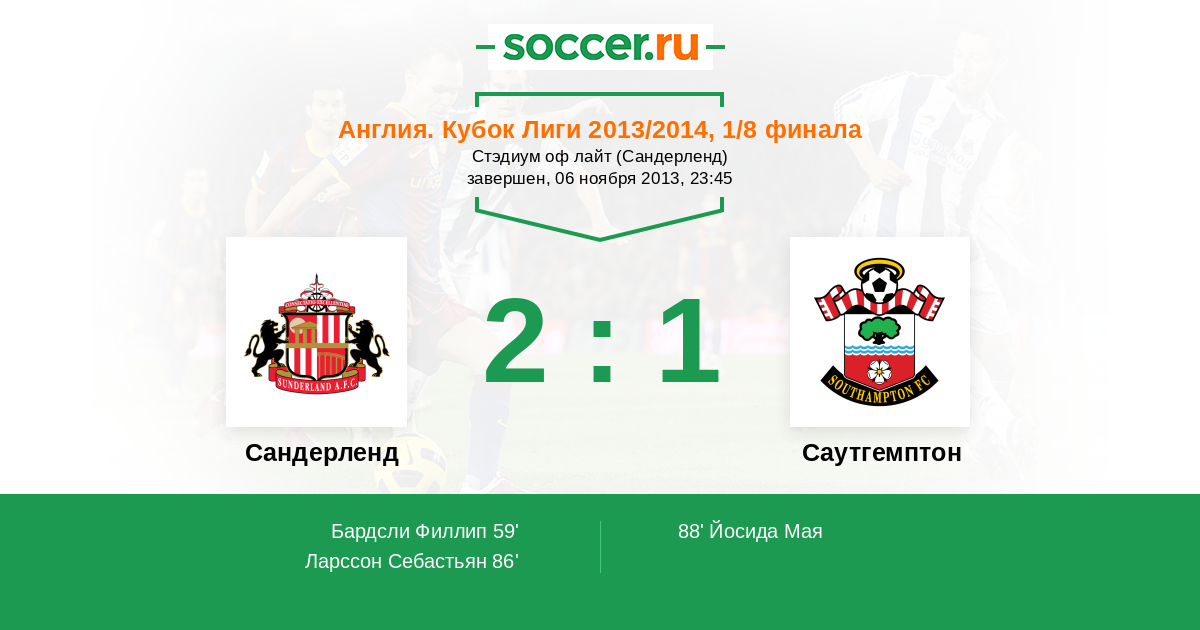 Протокол матча Сандерленд против Саутгемптон