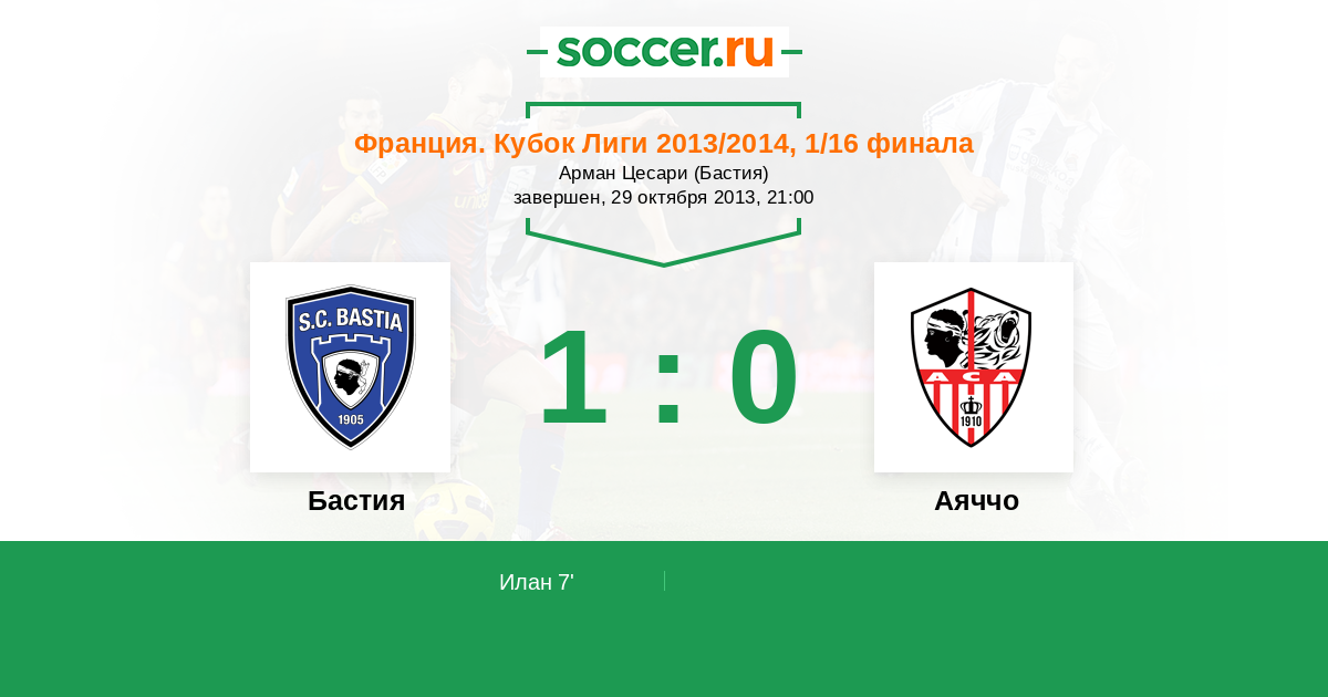 Протокол матча Бастия против Аяччо