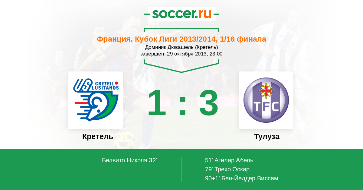 Протокол матча Кретель против Тулуза