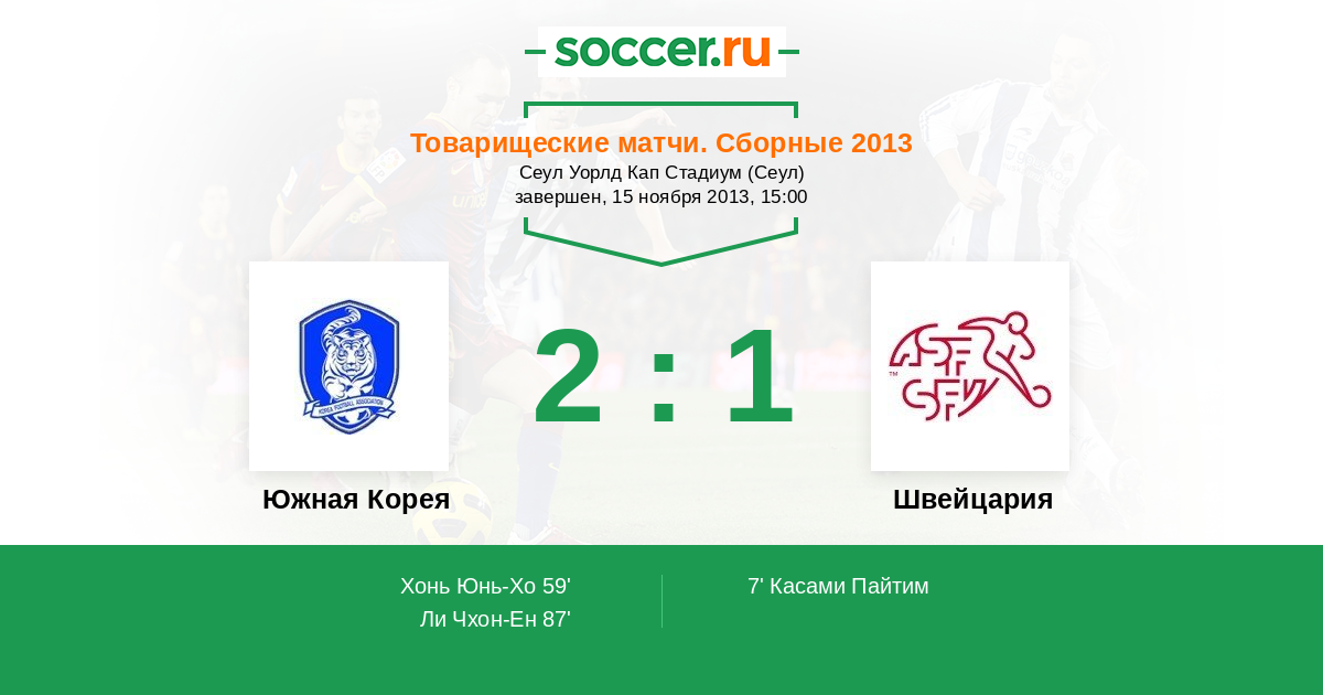 Протокол матча Южная Корея против Швейцария
