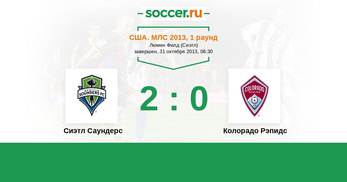 США. МЛС 06.10.2013 Колорадо Рэпидс Логотип футбольный клуб Колорадо Рэпидс (Денвер) 5:1 Логотип футбольный клуб Сиэтл Саундерс Сиэтл Саундерс