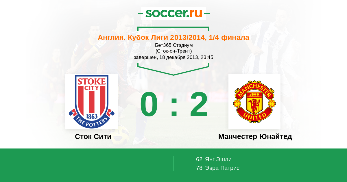 Протокол матча Сток Сити против Манчестер Юнайтед