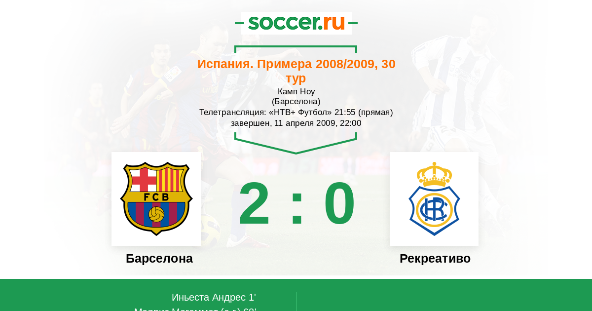 Протокол матча Барселона против Рекреативо