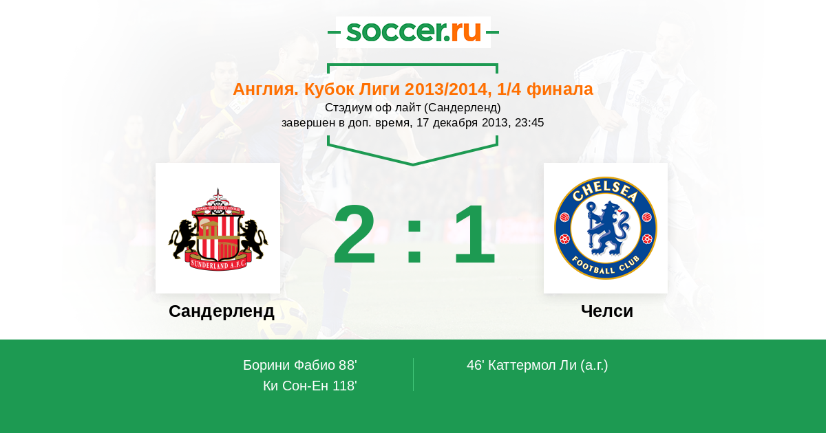 Протокол матча Сандерленд против Челси