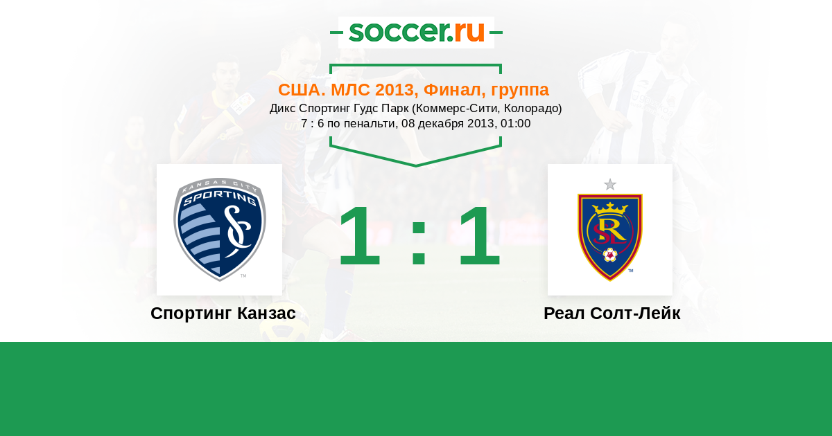 США. МЛС 21.07.2013 Реал Солт-Лейк Логотип футбольный клуб Реал Солт-Лейк (Солт-Лейк-Сити) 1:2 Логотип футбольный клуб Спортинг Канзас (Канзас-Сити) Спортинг Канзас