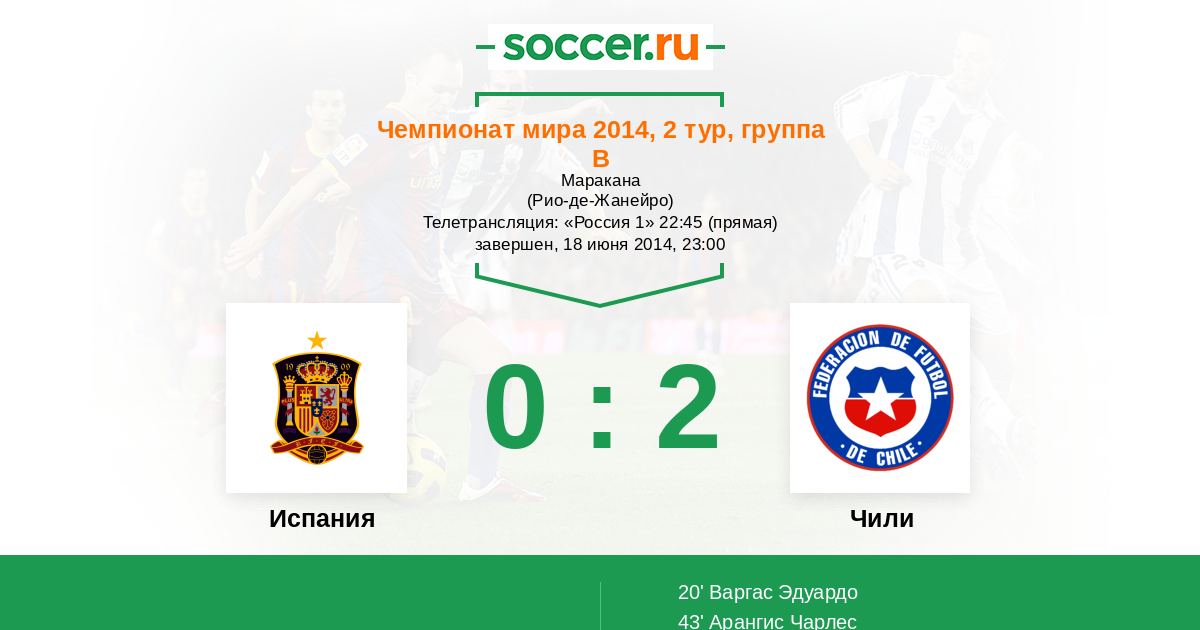 20' (0:1) Варгас Эдуардо (11) (Арангис Чарлес (20))
