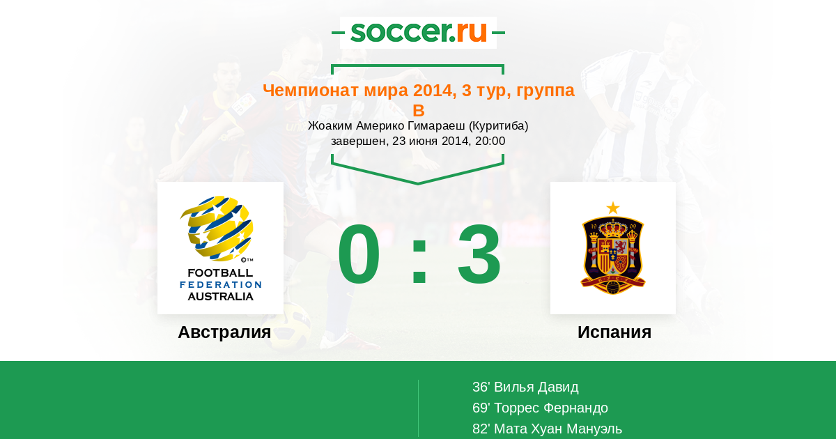 Протокол матча Австралия против Испания