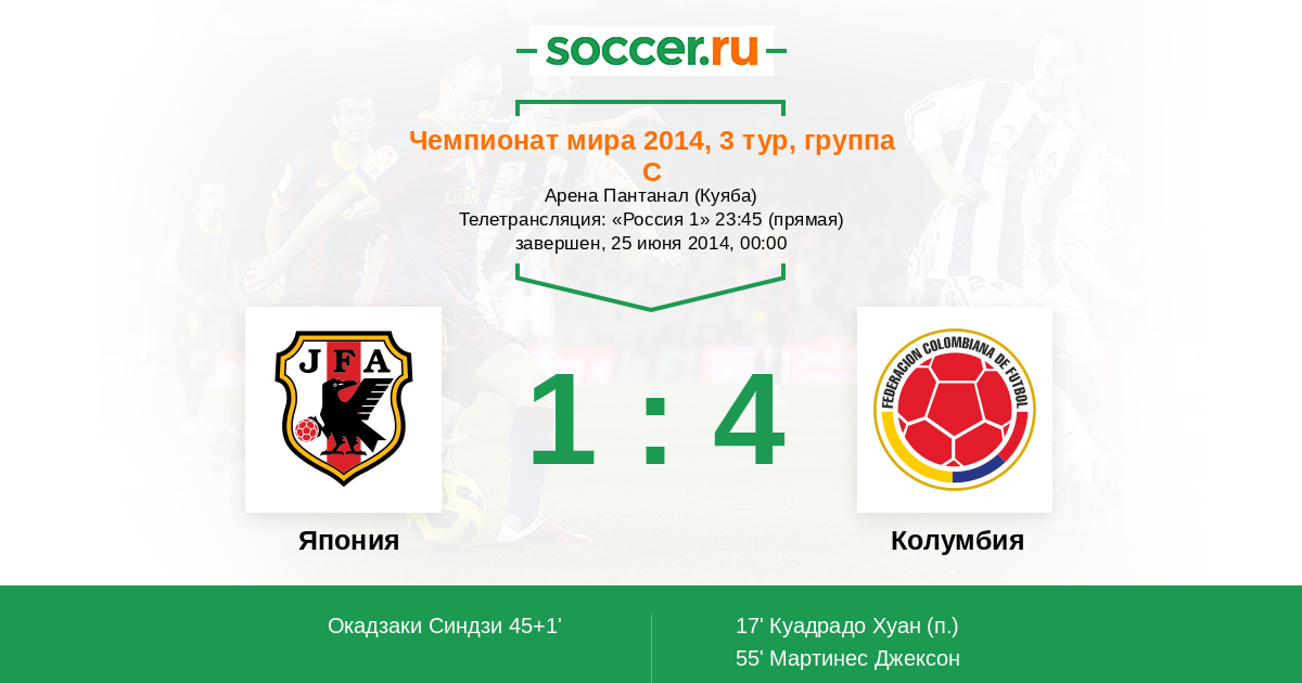 55' (1:2) Мартинес Джексон (21) (Родригес Хамес (10))