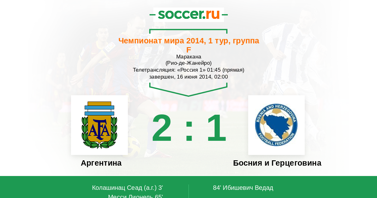 Протокол матча Аргентина против Босния и Герцеговина
