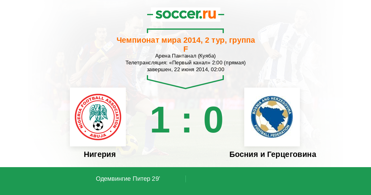 Протокол матча Нигерия против Босния и Герцеговина