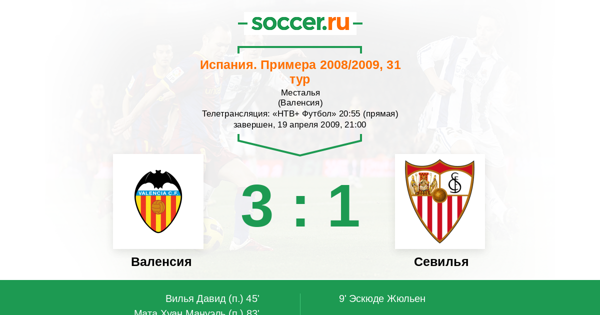 Протокол матча Валенсия против Севилья