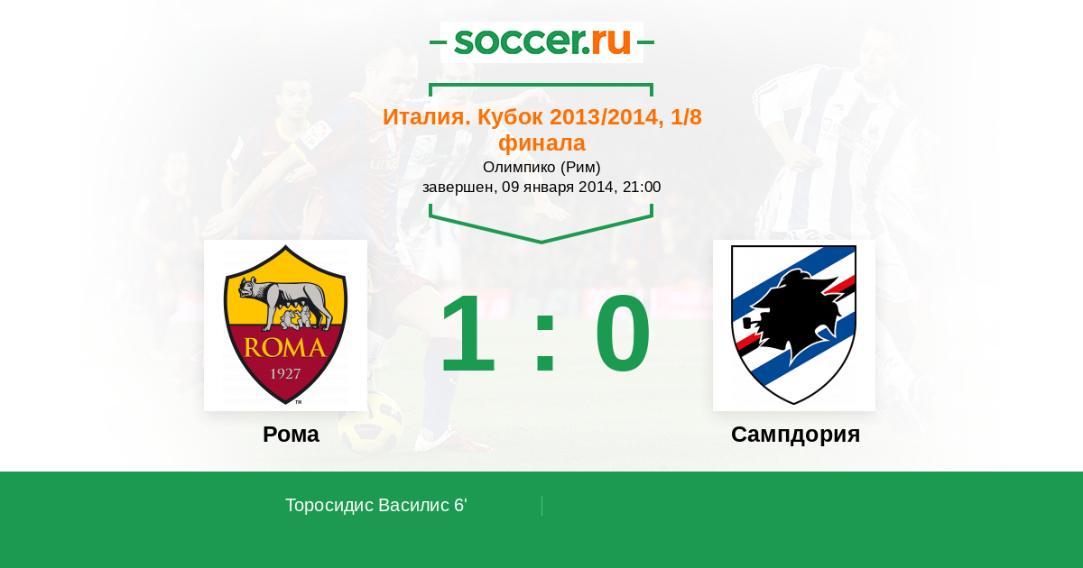 Протокол матча Рома против Сампдория