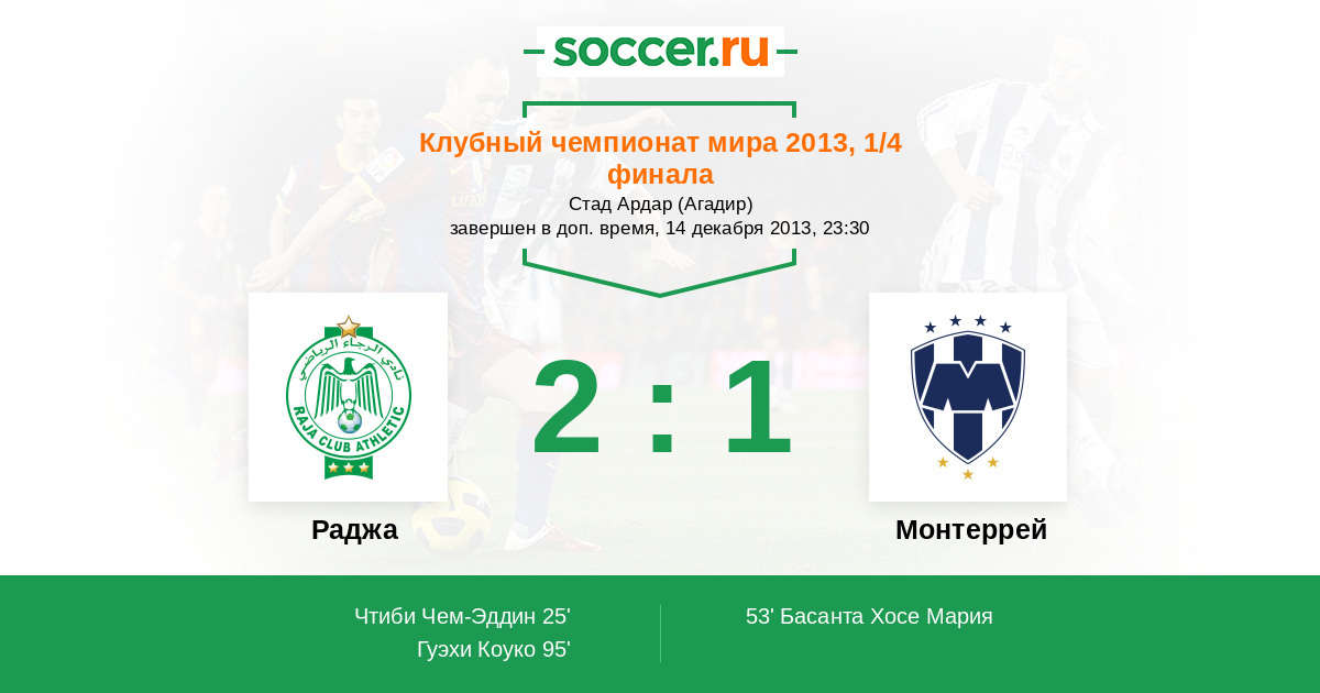 Протокол матча Раджа против Монтеррей