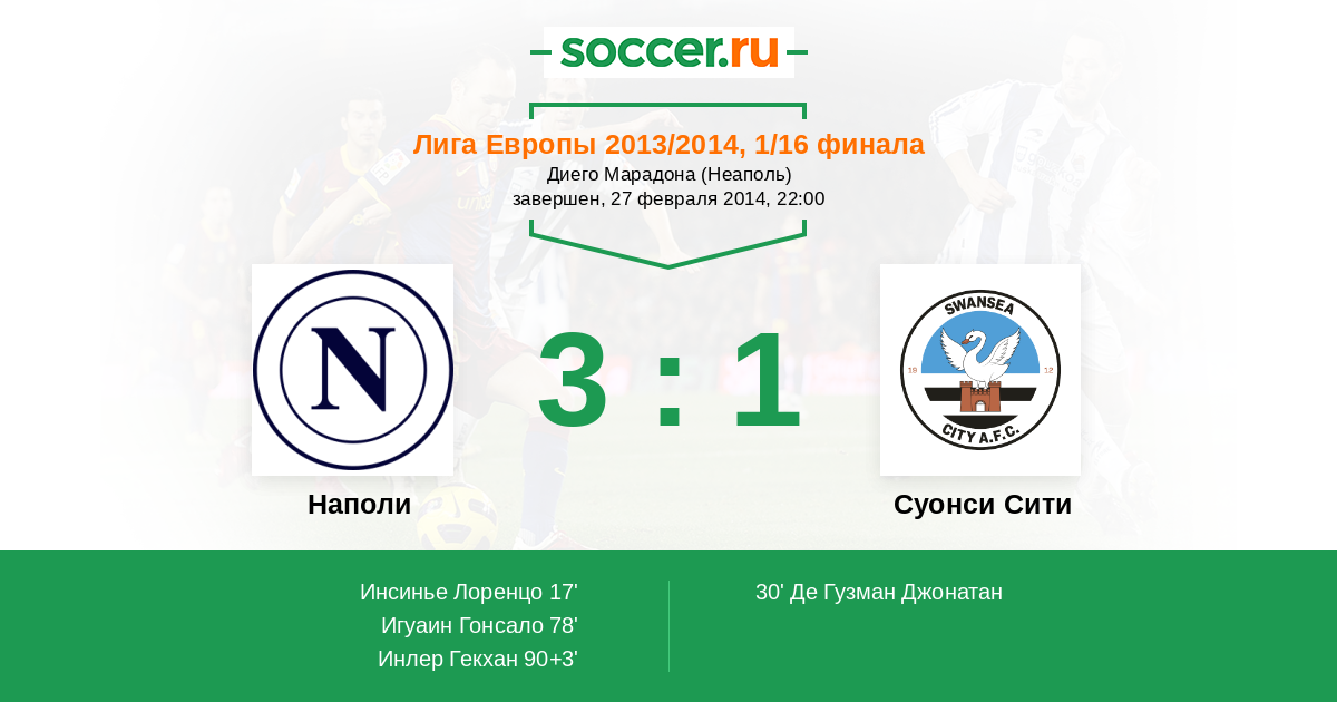 Протокол матча Наполи против Суонси Сити