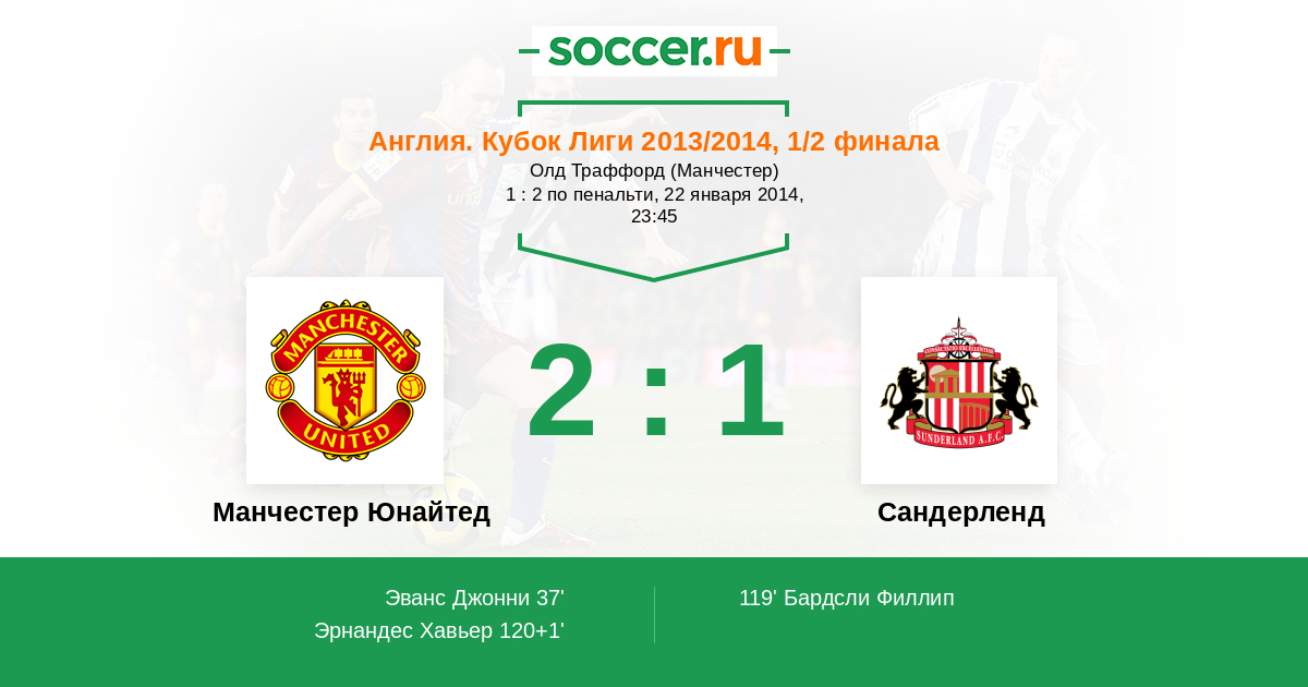 Протокол матча Манчестер Юнайтед против Сандерленд