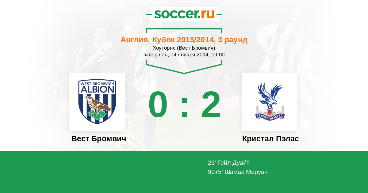 Протокол матча Вест Бромвич против Кристал Пэлас