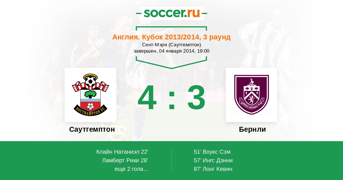 Протокол матча Саутгемптон против Бернли
